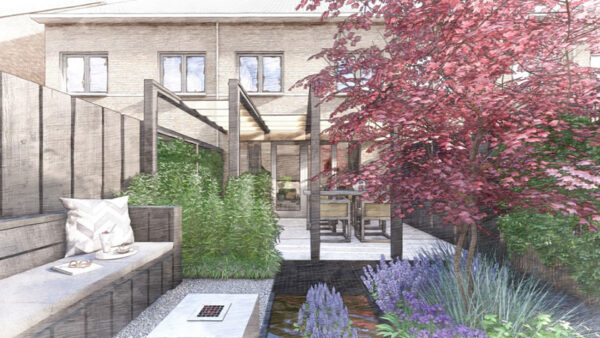 Onze tuinontwerpers maken op maat van jouw perceel het schetsontwerp.