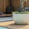 De Grigio New Egg Pot Low is een stijlvolle plantenbak met een ronde vorm en een tijdloze betonlook. Dankzij de warme kleur Antique White past dit model moeiteloos in zowel huiselijke interieurs als zakelijke omgevingen en tuinen. De Grigio-serie biedt het beste van twee werelden: de robuuste uitstraling van beton en het lichtgewicht, sterke en onderhoudsvriendelijke karakter van polyester, versterkt met steenpoeder.