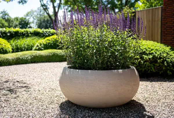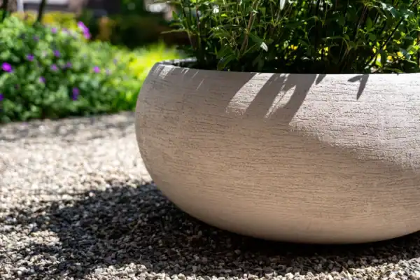 De Terreno Low Balloon is vervaardigd uit een sterke basis van polyester versterkt met steenpoeder, afgewerkt met natuurlijke klei met een licht reliëf. Deze materiaalkeuze geeft de schaal de authentieke uitstraling van zwaar aardewerk, maar met de praktische voordelen van kunststof: hij is licht van gewicht, duurzaam en onderhoudsvriendelijk. Zoals kenmerkend voor de collectie van Luca Lifestyle is de Terreno Low Balloon handgemaakt en volledig weerbestendig. De plantenbak is bestand tegen vorst en UV-straling, waardoor hij het hele jaar door buiten kan blijven staan zonder aan kwaliteit of kleur in te boeten.